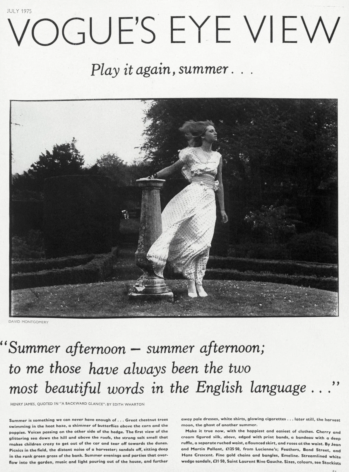 Vogue 1972 Vogue 1973 Vogue 1973 Tatler 1974 Vogue 1974 Harpers & Queen 1974 Vogue 1974 Vogue 1975 Vogue 1975 Vogue 1977 Harpers & Queen 1978 Vogue 1979 Country Life 1980 Beauty & Health 1977 Harpers & Queen 1985 Country Life 1988 Vogue 1989 Sheraton 1990 Vogue 1988 Vogue 1988 Vogue 1988